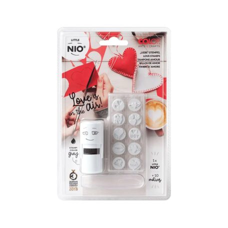 Kész bélyegző 17 mm átmérőjű kör lenyomattal.10 különböző, cserélhető motívummal.Téma: szerelem.